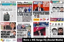 Розслідування про «Боширова», який насправді виявився Чепігою, потрапило на перші шпальти багатьох британських видань: