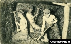 Листівка місцевого видавця литовського походження Яківа Переха, який першим почав зображати на фото не тільки величні індустріальні пейзажі міста, що поставало, але і самих шахтарів ‒ нехай і у постановочному вигляді, як тут. Перех вважається останнім видавцем листівок у Юзівці (працював аж до переменування міста у Сталіно 1924-го), а також лідером за їхньою кількістю.